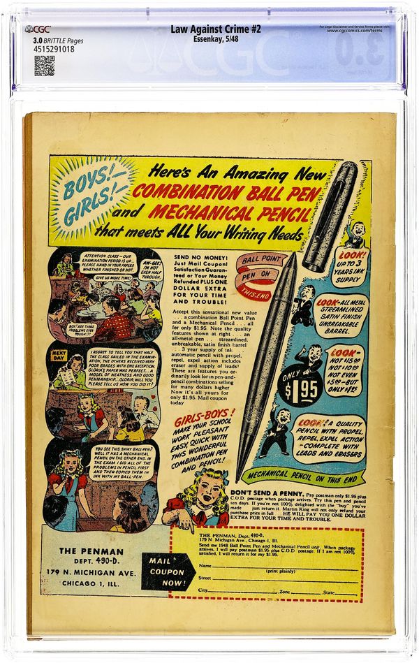 Published Jul 1951 by Ace Magazines.$225.00- Paper: Off white to white