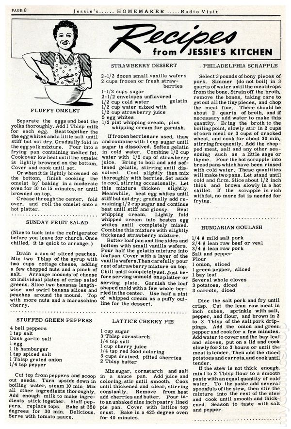 "Kissing Cousin"; Archie catches Reggie kissing Veronica; When confronted, Veronica declares herself to be her French cousin. "By Design"; Wilbur gets good marks in art by copying the screen patterns on their broken television set. Archie Annual #8 ad. "Chubby Chuckles Dream Cars"; Chubby has a dream of all the unique cars he would design for he and Katy Keene. "Beat It!"; Reggie picks the wrong place to hide when his mother is beating rugs over a clothesline. "Flower Girl"; Betty gets Archie to play "she loves me, she loves me not" with the petals of a daisy. "Trying for Sighs"; Betty buys a dozen lipsticks on sale for 10 cents each. "Mind Over Platter!", script and art by Joe Edwards; Merry tells Hap he needs to lose some weight; Hap doesn't believe her until he can't fit into his old Army uniform. 36 pgs., full color. Cover price $0.10.