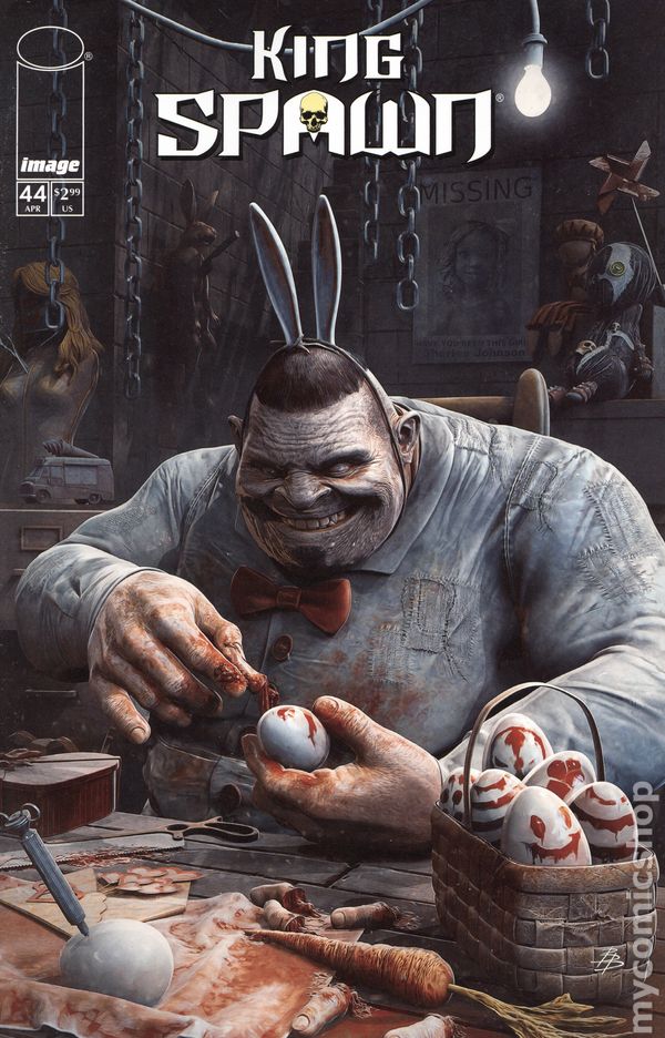 $13 KING SPAWN #44 CVR C BJORN BARENDS - B&B NM Easter Bunny $50 KING SPAWN #44 C CGC 9.8 NM/MINT Björn Barends "Finger Painting" Image Comics Clicking on the links to the eBay listings shown above and then making a purchase may result in MyComicShop earning a commission from the eBay Partner Network.