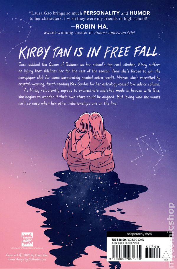 1st printing. Story and art by Laura Gao. Kirby Tan is in free fall. It's bad enough that she breaks her arm at the rock-climbing invitationals, sidelining her for the season. Now she's forced to join the newspaper club for some desperately needed extra credit. Worse, she's recruited by crystal-wearing, tarot-reading Bex Santos for her astrology-based love advice column. As Kirby reluctantly agrees to orchestrate "matches made in heaven" with Bex, she begins to wonder if their own planets could be aligned. But it's not so easy for Kirby to embrace her queer identity, not when she owes so much to her family and their church community. What would it be like to believe your fate is written in the stars? Can Kirby learn to trust that love will catch you when you fall...? Hardcover, 6-in. x 9-in., 304 pages, PC. Cover price $26.99.