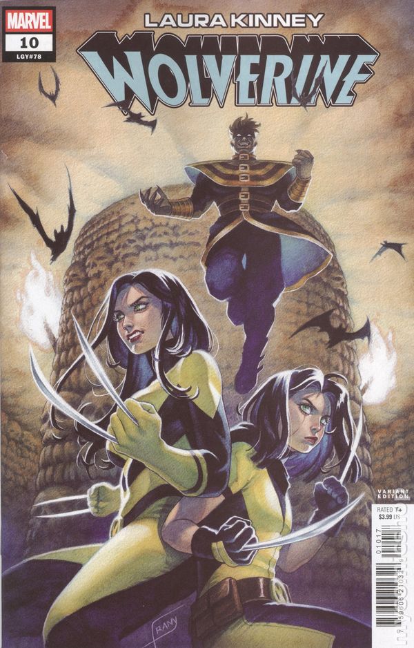 Limited 1 for 100 Retailer Incentive Variant Cover. Written by Erica Schultz. Art by Giada Belviso. Cover by Alex Ross. DEATH STALKS THE KINNEY SISTERS! GABBY KINNEY has a sickness even her healing factor can't cope with. WOLVERINE searches the catacombs of Paris for the cure, but will XARUS seal Gabby's fate? Guest-starring: CLEA STRANGE! 28 pages, full color. Rated T+ Cover price $3.99.