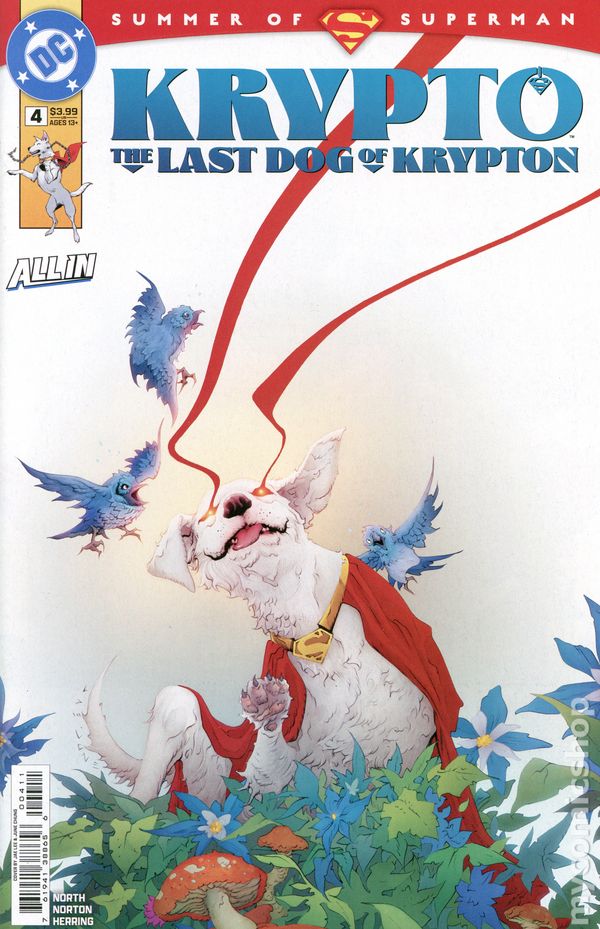 Written by Ryan North. Art by Mike Norton. Cover by Jae Lee. RYAN NORTH AND MIKE NORTON TAKE KRYPTO COAST-TO-COAST! Krypto has made a new friend--another stray--and together, the two of them are traveling across America. But they are not alone, for a monster from a distant world has come to Earth, and their two paths are now on a collision course. Krypto, with superpowers that are just coming in, must find a way to defend himself, his friend--and his planet. 28 Pgs., FC, T. Cover price $3.99.