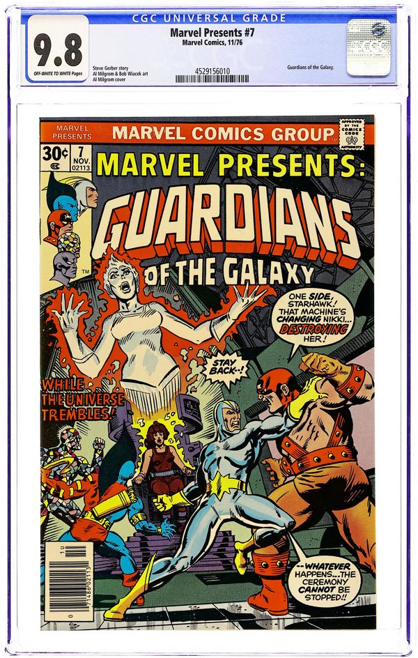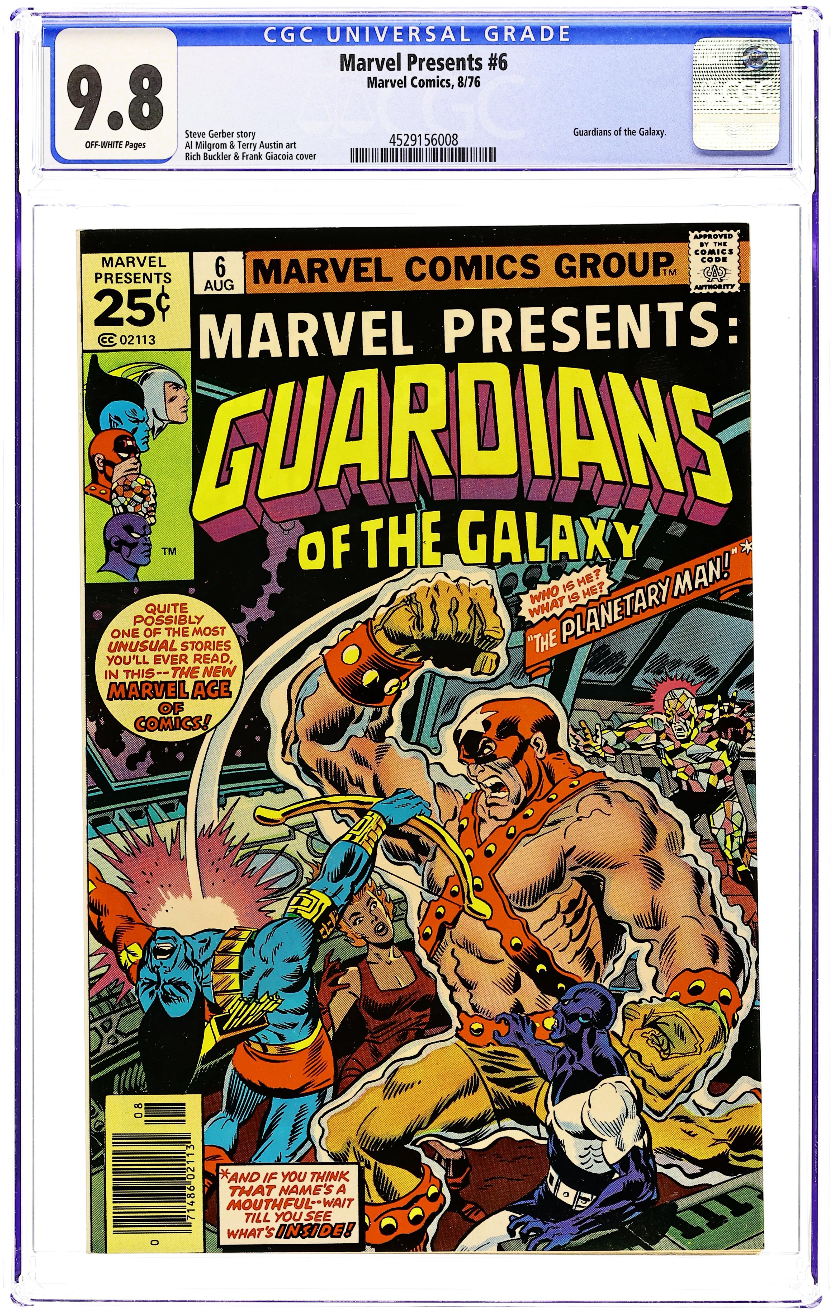 Cover pencils by Al Milgrom (sketch) and John Romita (finished pencils), inks by John Romita. "Just Another Planet Story!," script by Steve Gerber, pencils by Al Milgrom, inks by Pablo Marcos; After a long battle against the Badoon, the members of the Guardians of the Galaxy attempt to blend back into post-war earth, with unsatisfying and disillusioning results; Starhawk gives them back the purpose they need in their lives by reforming the Group for a new mission! The letters page contains Marvel Value Stamp series B # 35 (Dr. Strange by Frank Brunner). 36 pgs., full color. $0.25. Cover price $0.25.