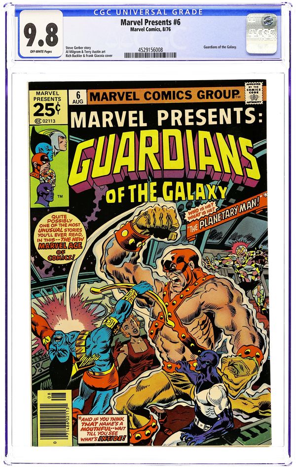 Last 25-cent cover price. Cover pencils by Rich Buckler, inks by Frank Giacoia. "The Topographical Man," script by Steve Gerber, pencils by Al Milgrom, inks by Terry Austin; The Guardians of the Galaxy continue their attack on Karanada, flying right into the mouth of the being, where they find Starhawk waiting for them! 36 pgs., full color. $0.25. Cover price $0.25.