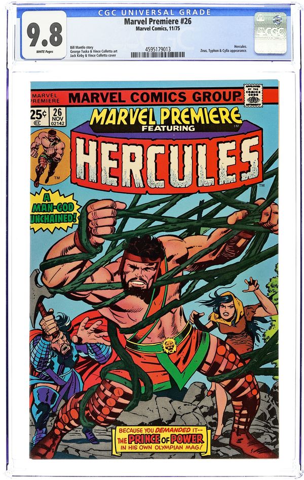 The Games of Raging Gods - Written by Bill Mantlo. Art by George Tuska & Vince Colletta. Cover by Jack Kirby & Vince Colletta. Featuring Hercules! Because you demanded it -- the Prince of Power in his own Olympian mag! A man-god unchained! Also starring Zeus, Richard Fenster, Typhon and Cylla. 32 pages, full color. Cover price $0.25.
