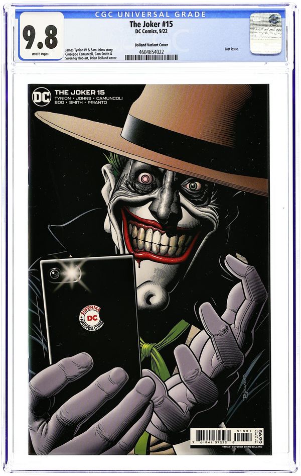 Written by James Tynion IV. Art by Giuseppe Camuncoli, Cam Smith. Cover by Brian Bolland. The Clown Prince of Crime had one more trick up his sleeve—a thrilling, surprise final issue! How did Gordon escape Texas? What happened to Bane and Vengeance? Did The Joker get the last laugh? Find out! 48 pages, full color. Rated T+ Cover price $6.99.