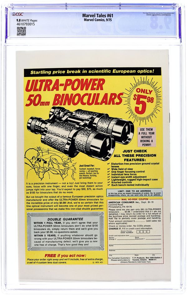 Reprints Amazing Spider-Man (1963 1st Series) #94. Spider-Man origin retold; Green Goblin, Kingpin, Doctor Octopus, Vulture, Rhino, Sandman, and Lizard cameos in "On the Wings of Death." Script by Stan Lee, pencils by John Romita, Sr., inks by Sal Buscema. Cover price $0.30.