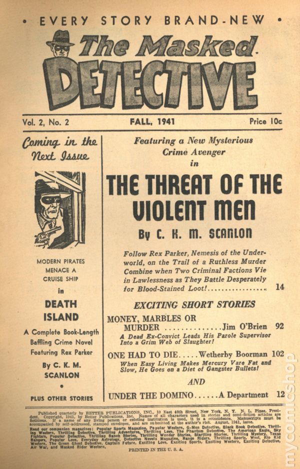 Published Sep 1941 by Detective Stories Publishing Co..This item is not in stock at MyComicShop. If you use the "Add to want list" tab to add this issue to your want list, we will email you when it becomes available.