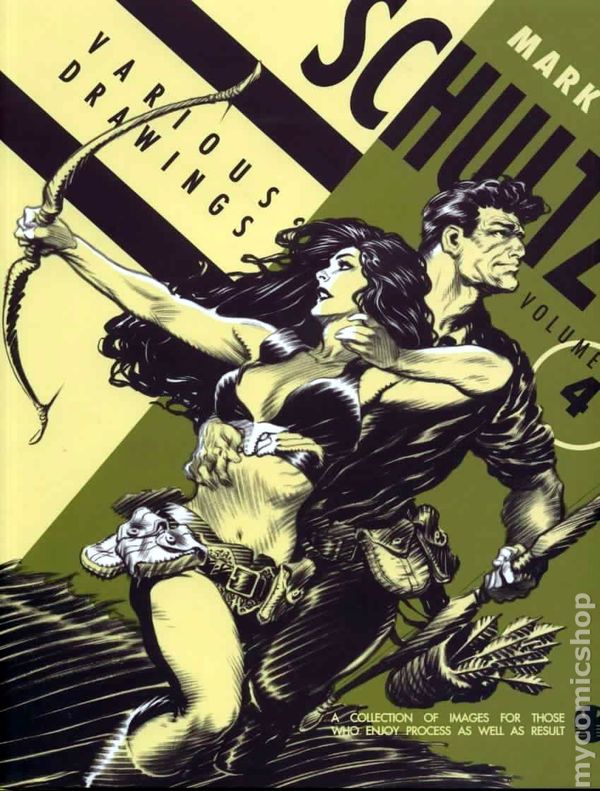 Volume 4 - 1st printing. Introduction by Brendan Burford. Mark Schultz's Various Drawings series returns with this fourth collection, highlighting the latest work by this Eisner and Harvey Award-winning artist. His best work over the last two years continued his experimentation with graphite, charcoal, brush and ink, and color-tinted images. Schultz's new Pulpette personal works combine his love for pulp imagery with classic pin-up style art. Also included are preliminary pieces and a self-rejected sample for his illustrated novella, Storms at Sea as well as new Xenozoic Tales specialty drawings. Softcover, 8-in. x 11-in., 48 pages, B&W. NOTE: Limited to 800 copies. Cover price $19.95.