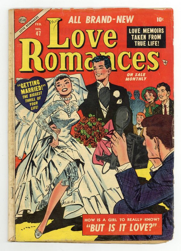 Cover by Matt Baker & Vince Colletta. Edited by Stan Lee. Stories by Stan Lee and unknown. Art by Jay Scott Pike, Vince Colletta, Matt Baker, Tom Scheuer and unknown. Featuring: "The Dancer and the Debutante"; "The Bride with a Broken Heart"; and "First Date!" Plus: He was hers for tonight! But once he saw the gorgeous Vivian, what chance would she have? Your heart won't let you forget..."And One Was Beautiful!" Also: 2-page text story "Music Hath Charms"! 32 pages, full color. Cover price $0.10.