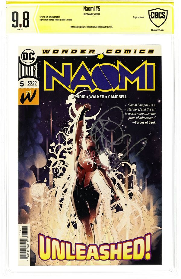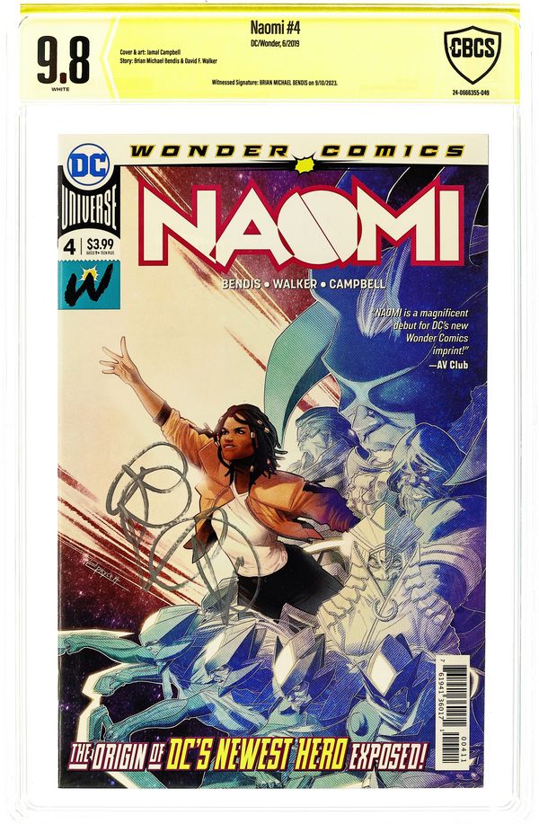 Written by Brian Michael Bendis and David F. Walker. Art and Cover by Jamal Campbell. A brand-new character in the DC Universe comes into focus as Naomi confronts the one person in her small town she is convinced knows the secret of her mysterious adoption and her obsession with Superman. The truth is going to change both her and the DC Universe forever. The secret of Naomi opens the door to an enormous reveal you will not want to miss. This exciting new mystery from the powerhouse creative team of writers Brian Michael Bendis (Jessica Jones, Spider-Man) and David F. Walker (Shaft, Cyborg) and new, amazing art talent Jamal Campbell. 32 pages, full color. Rated T+ Cover price $3.99.