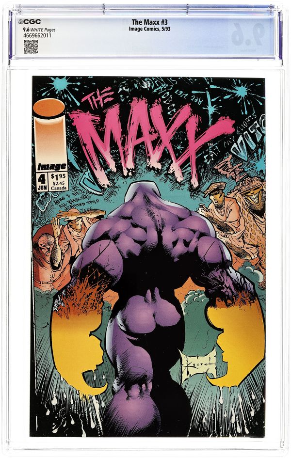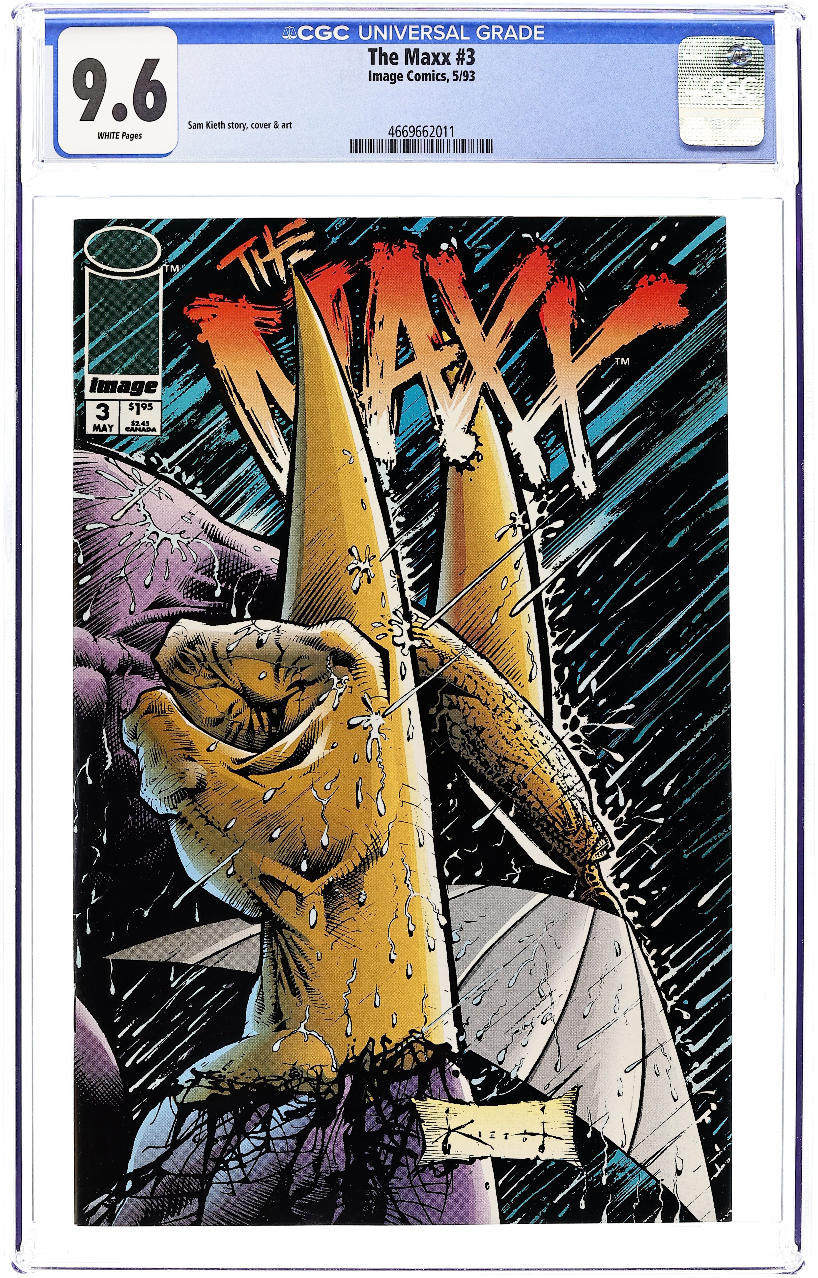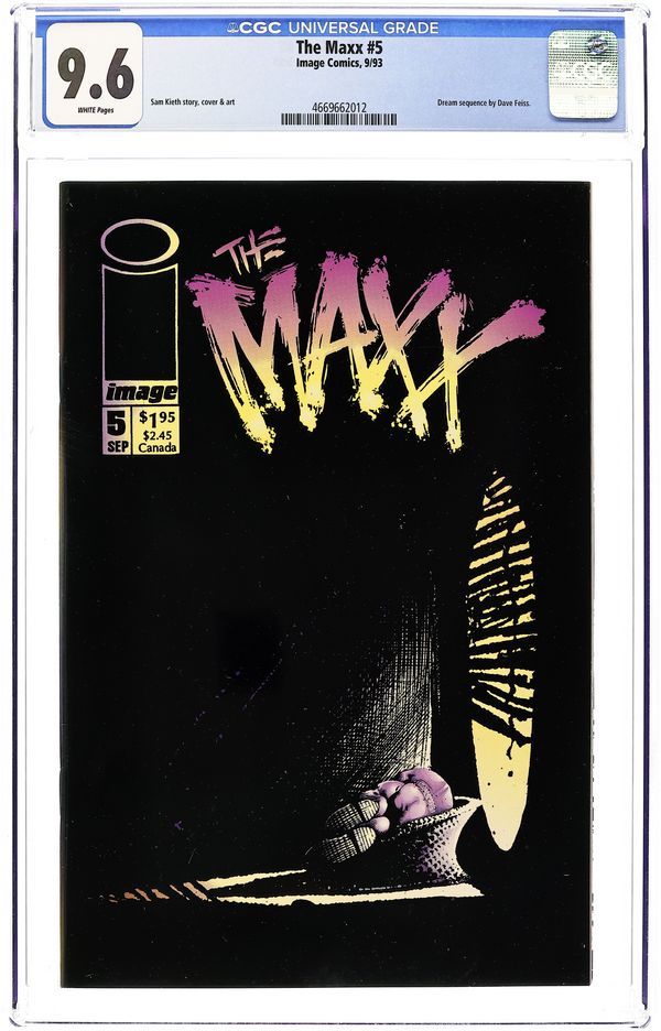 Cover art by Sam Kieth. The Crappon In the Hat, script by Sam Kieth (plot) and William Messner-Loebs (script), pencils by Sam Kieth (1-5, 18-23) and Dave Feiss (6-17), inks by Sam Kieth, Jim Sinclair (finishes) (1-5,18-23), and Dave Feiss (6-17); Maxx falls asleep watching Saturday morning cartoons and ends up in a Dr. Seuss story. 36 pgs. $1.95. Cover price $1.95.