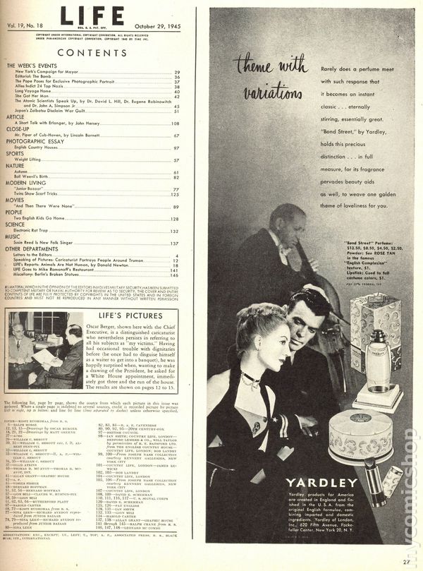 October 29, 1945. Classic weekly news/photo magazine. In this issue: English country houses; weight lifting; light planes; and more. 10.5-in. x 13.75-in.; partial color; 148 pages. Cover price $0.10.