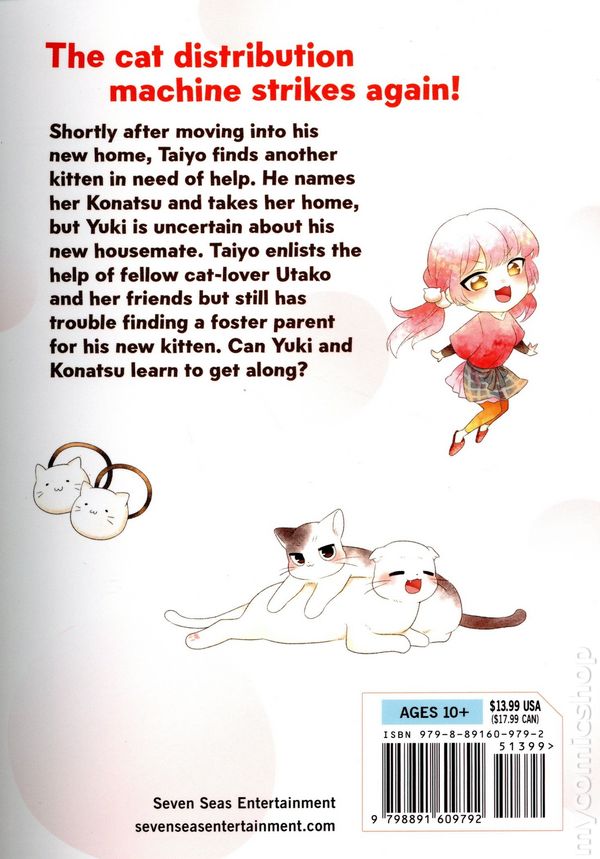 Volume 4 - 1st printing. Story and art by Migiri Miki. Shortly after moving into his new home, Taiyo finds another kitten in need of help. He names her Konatsu and takes her home, but Yuki is uncertain about his new housemate. Taiyo enlists the help of fellow cat-lover Utako and her friends but still has trouble finding a foster parent for his new kitten. Can Yuki and Konatsu learn to get along? Softcover, 5-in. x 7-in., 192 pages, B&W. Cover price $13.99.