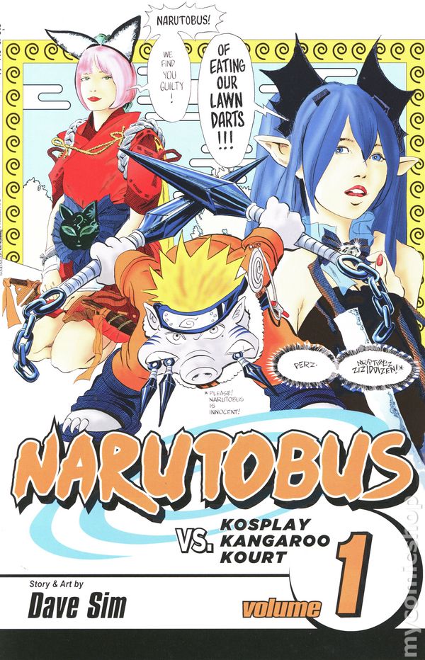 Written and Art by Dave Sim. Cover by Dave Sim, David Birdsong. Dave Sim's second Manga/glamourpuss mash-up continues! This time with Narutobus #1, the Naruto parody! Featuring the Kosplay Kangaroo Kourt (aka the K.K.K.) holding Cerebus to account for the infamous 'Baby Throwing Pages' from Church & State Vol. 1, the 11 panels of which Sim recreates in his early 1980s style. It's an art-style extravaganza! Will Narutobus be found innocent and set free, or is it already too late for our hero? 16 pages, full B&W. Cover price $5.00.
