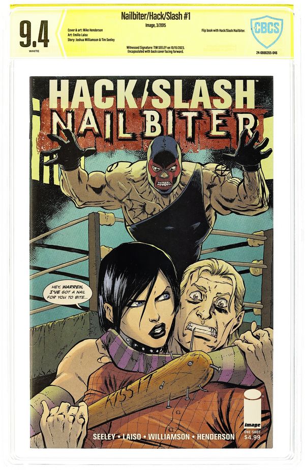 Written by Joshua Williamson and Tim Seeley. Art and Cover by Mike Henderson and Adam Guzowski and Tim Seeley. SERIAL KILLERS MEET SERIAL KILLER… KILLERS! Cassie Hack vs. the Nailbiter! Vlad vs. the Lucha Eliminador! IT'S ON! Two brand spanking new tales of terror by the creative teams of both Image hits! TIM SEELEY returns to the character he created to give you a nasty blast from the past. If you've ever needed an excuse to read these two horrific comics, now is your chance! 36 pages, full color. MR Cover price $4.99.