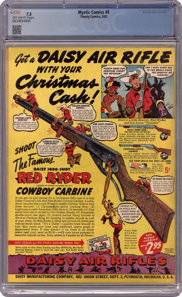 Published Jan 1952 by Marvel/Atlas.$315.00- Paper: Off white to white