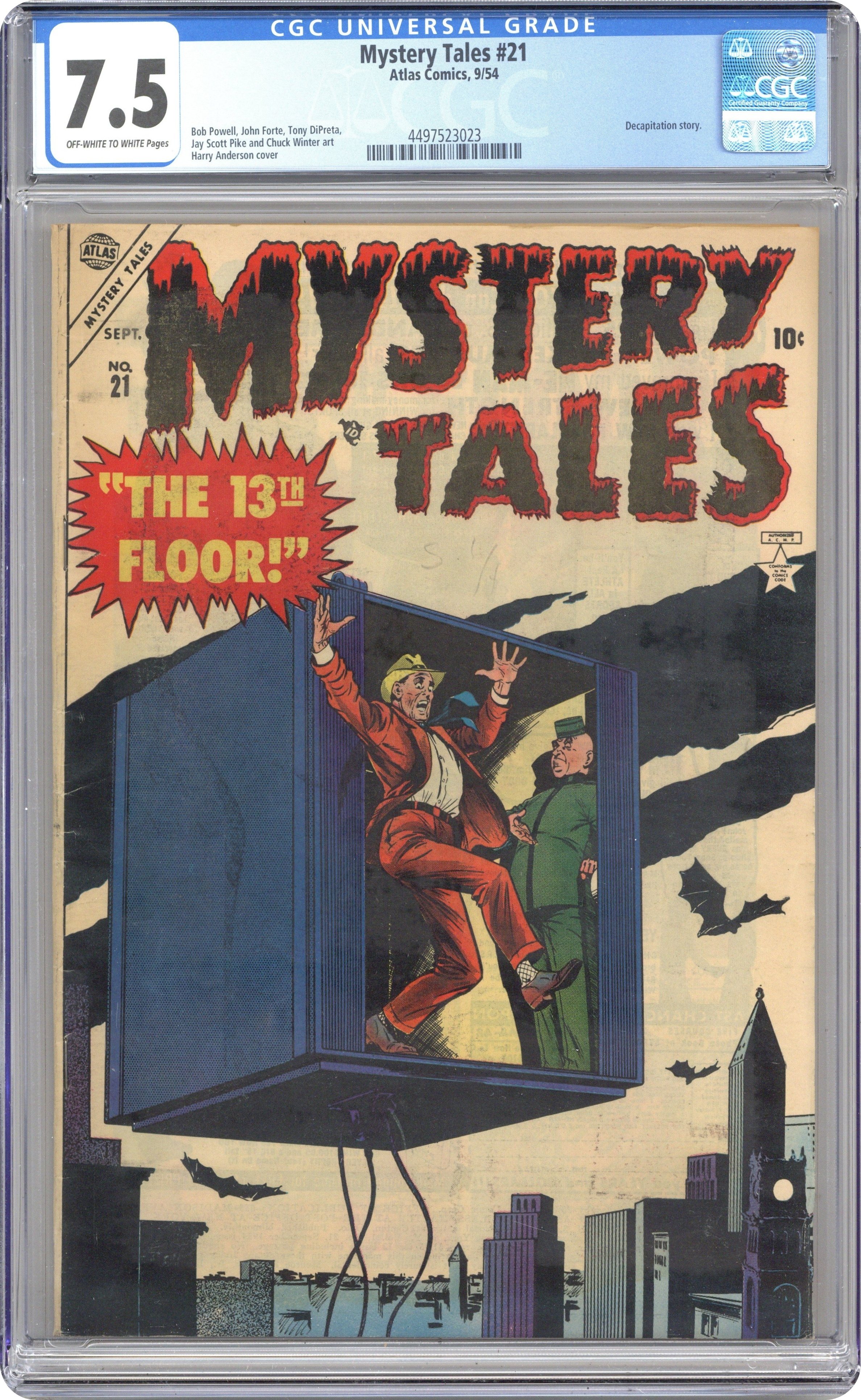 "The Lady in Glass" (art by Paul Reinman), "Case Closed" (art by John Forte), "Down on the Farm," "The Stone Heads," "Cast of Characters" (art by Jay Scott Pike," and a two-page text story, "Return From the Grave." Joe Maneely cover. Cover price $0.10.