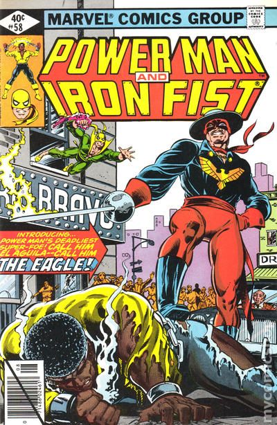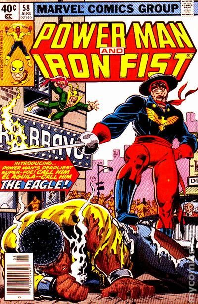 Newsstand Edition. "El Aguila has Landed!" Guest-starring Misty Knight. Story by Mary Jo Duffy. Art by Trevor Von Eeden and Dan Green. A modern-day Robin Hood is about to go down hard. That is unless Power Man and Iron Fist have anything to say about it. Cover price $0.40.