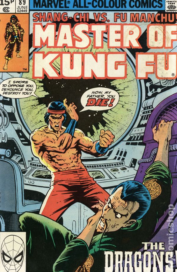 Warriors of the Golden Dawn. Part 7. "The Dragons!" Story by Doug Moench. Art by Mike Zeck and Gene Day. Cover by Mike Zeck. Have Shang Chi and Leiko defeated all Fu Manchu's deadliest surrogates only to see the madman escape the battlefield unscathed? Not if the Master of Kung Fu can help it. He plans to see that this is the last time his malevolent father threatens the world. Cover price $0.40.
