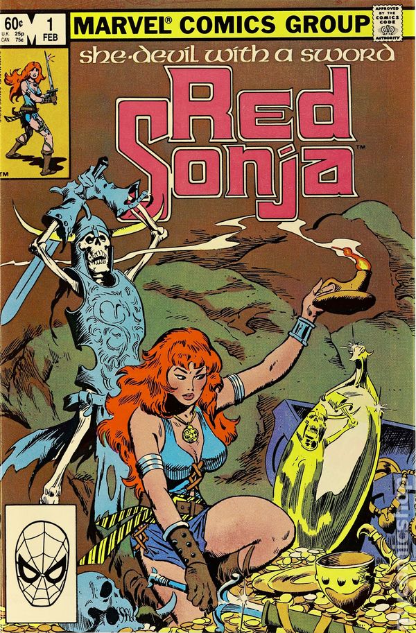 Canadian edition with $.75 cover price - "The Blood That Binds!" Written by Christie Marx and Roy Thomas. Art by Tony DeZuniga and Ernie Colon. Cover by John Buscema. The She-Devil with a Sword embarks on a voyage with her golden-skinned companion Zora as they accompany a maiden on her harrowing journey across the sea. Red Sonja pits her courage and mighty sword-arm against pirates, the elements,and a conspiracy for murder! 32 pages, FC. Cover price $0.75.