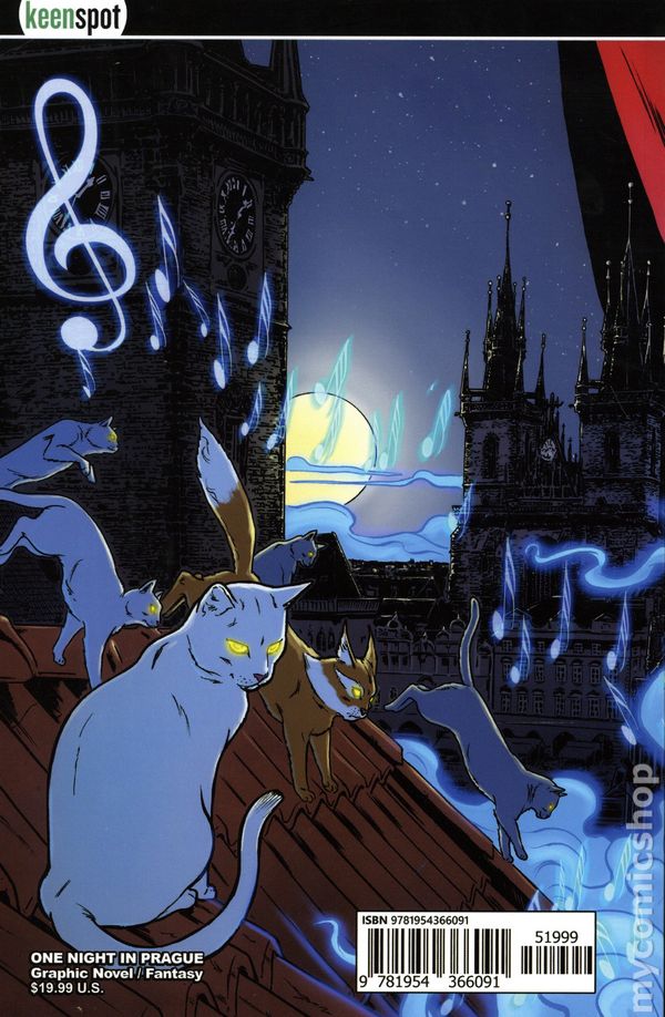 1st printing. Collects One Night in Prague (2022 Keenspot) #1-3. Written by Constantin Werner. Art and Cover by Tadd Galusha. A new fantasy adventure graphic novel from the mind of Constantin Werner, screenwriter and producer of the upcoming motion picture In The Lost Lands based on a story by George R.R. Martin, starring Dave Bautista and Milla Jovovich, directed by Paul WS Anderson! After young concert pianist Siwan loses part of his hand in a tragic accident, his family falls into a serious crisis. Following a strange prediction by a psychic, he departs for Prague with his supportive father Minkyu and good-humored uncle Jinwoo. They must find a mysterious white cat, who allegedly holds the key to Siwan's future. Once reaching the Czech capital, they're drawn into an ancient struggle between two groups of mystical shapeshifters! Softcover, 76 pages, full color. Cover price $19.99.
