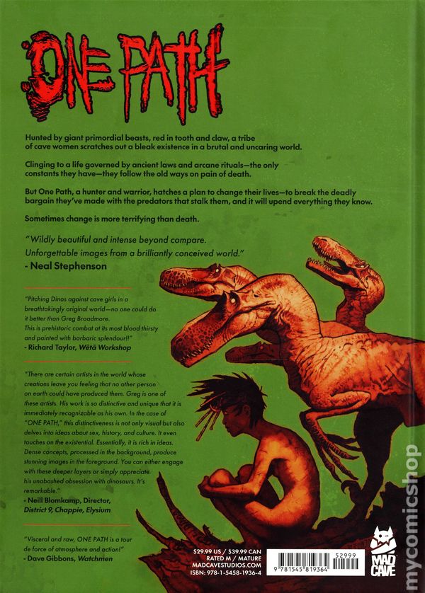Volume 1 - 1st printing. Written by Greg Broadmore, Andy Lanning, and Nick Boshier. Art and cover by Greg Broadmore. Hunted by giant primordial beasts, red in tooth and claw, a tribe of cavegirls scratch out a bleak existence in a brutal uncaring world. They cling onto a life where not many make it beyond the first few months, let alone to adulthood. Governed by ancient laws and arcane rituals - the only constants they have - they follow the old ways on pain of death. But One Path, a hunter and warrior, has a plan to change their lives. To free them from the toll the great predators that stalk them charge, and it will overturn everything they know. Softcover, 8 1/4-in. x 11 1/2-in., 200 pages, full color. Mature Readers Cover price $19.99.