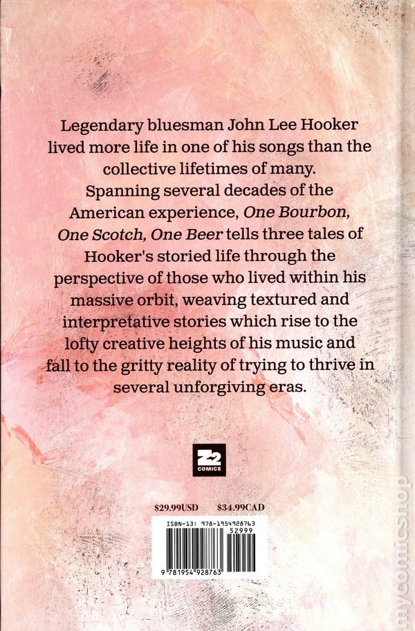 1st printing. Written by Jarrett Williams and Gabe Soria. Art by Kyle Baker, Taylan Kurtulus, and Dave Chisholm. Cover by Ho Che Anderson. Legendary bluesman John Lee Hooker lived more life in one of his songs than the collective lifetimes of many. Spanning several decades of the American experience, One Bourbon, One Scotch, One Beer tells three tales of Hooker's storied life through the perspective of those who lived within his massive orbit, weaving textured and interpretative stories that rise to the lofty creative heights of his music and fall to the gritty reality of trying to thrive in several unforgiving eras. Hardcover, 112 pages, full color. Cover price $29.99.