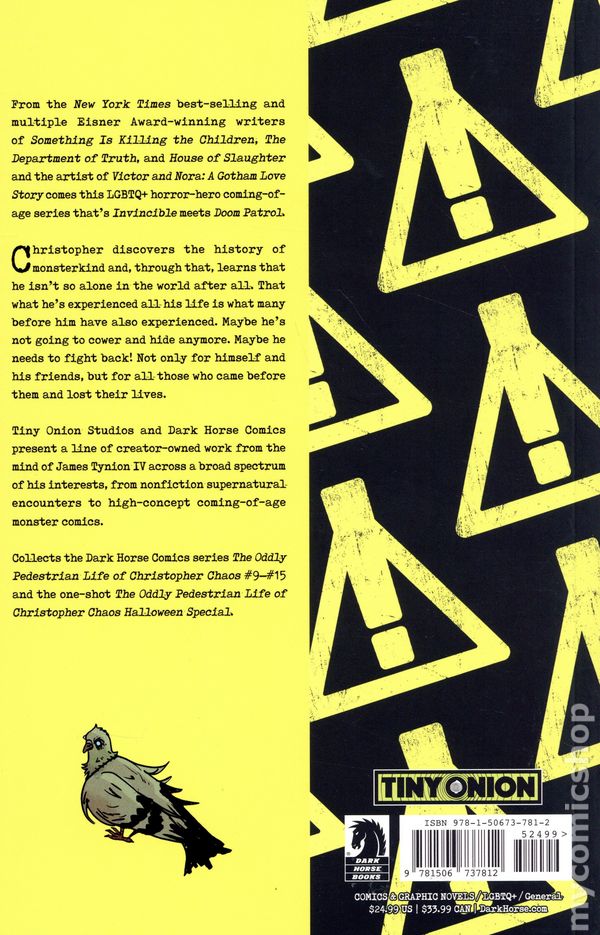 Volume 2 - 1st printing. Collects The Oddly Pedestrian Life of Christopher Chaos (2023 Dark Horse) #9-15 and The Oddly Pedestrian Life of Christopher Chaos Halloween Special (2024 Dark Horse). Based on the Idea by James Tynion IV. Written by Tate Brombal. Art by Isaac Goodhart. Cover by Nick Robles. Christopher discovers the history of Monsterkind, and through that learns that he isn't so alone in the world after all. That what he's experienced all his life is what many before him have also experienced. Maybe he's not going to cower and hide anymore. Maybe he needs to fight back! Not only for himself and his friends, but for all those who came before them and lost their lives. Softcover, 256 pages, full color. Cover price $24.99.