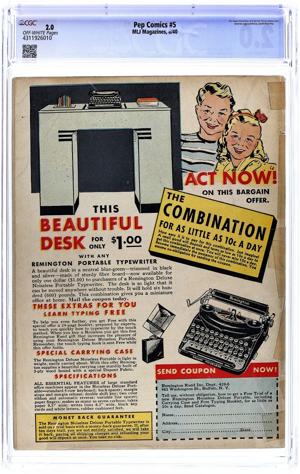 Tags: ArchiePublished Dec 1942 by Archie Publications.$12,000- Paper: Cream to off white