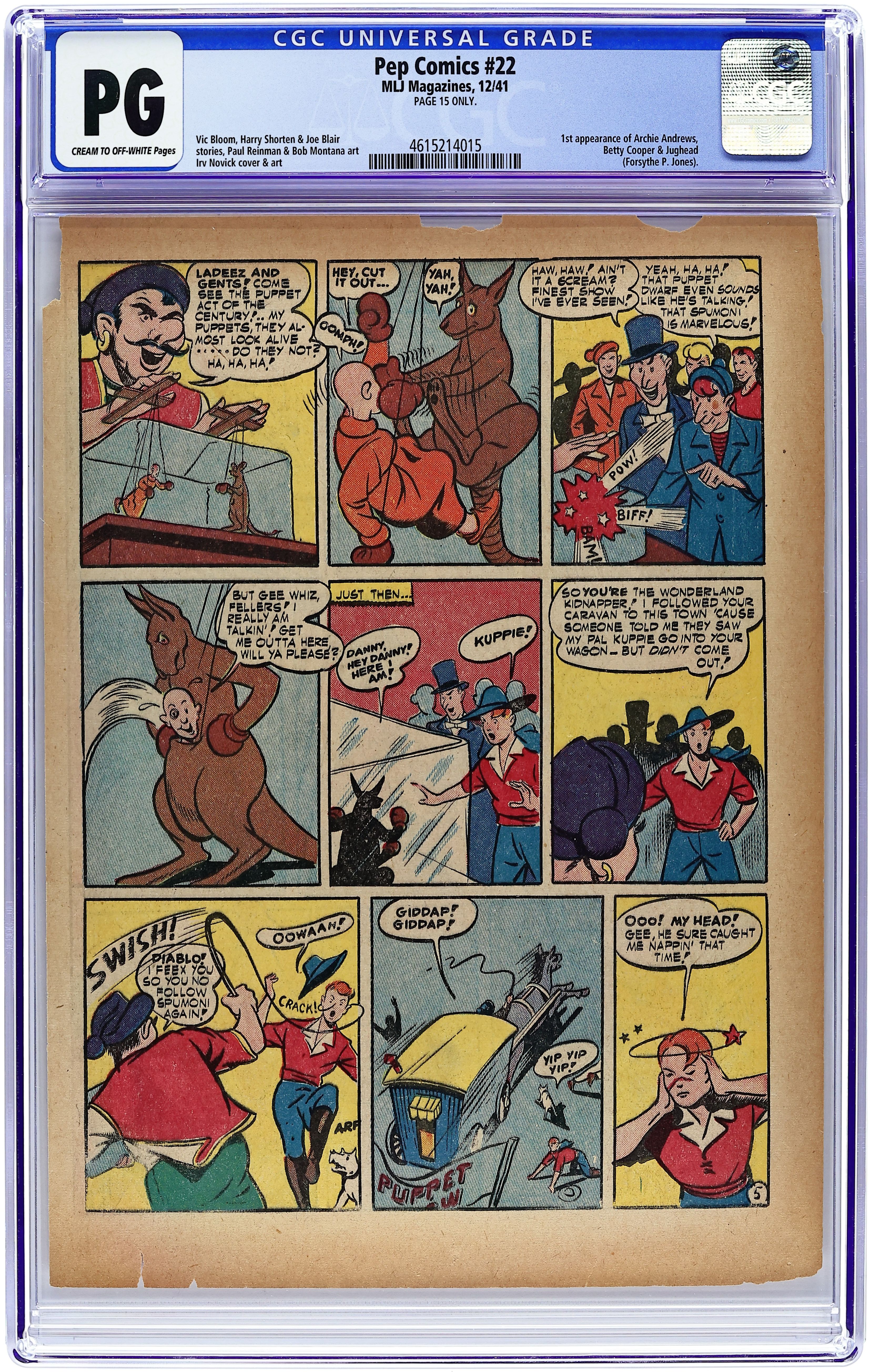 First cover appearance of Archie Andrews. Cover art by Bob Montana. Souls For Sale starring Shield, art by Irv Novick. The Secret of the Leopard's Curse starring Hangman, art by Bob Fujitani. The Pyramid Pillbox starring Captain Commando, art by Irv Novick. Sergeant Boyle story, script by Harry Shorten, art by Carl Hubbell. Danny In Wonderland story, script by Harry Shorten, art by Red Holmdale. The 3-11 Club starring Archie, script and art by Bob Montana. The Case of the Steeplechase Murders starring Bentley of Scotland Yard, art by Paul Reinman. 68 pgs. $0.10. Cover price $0.10.