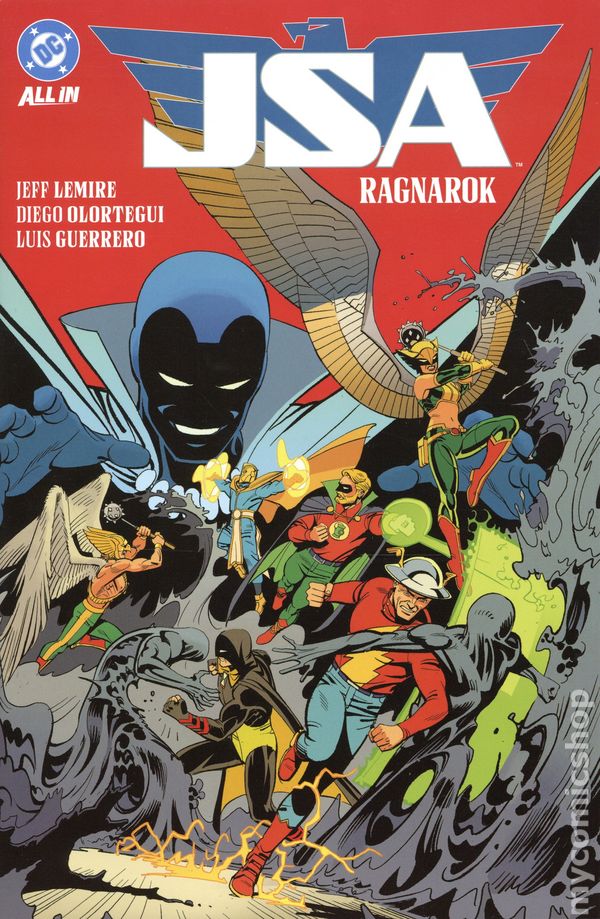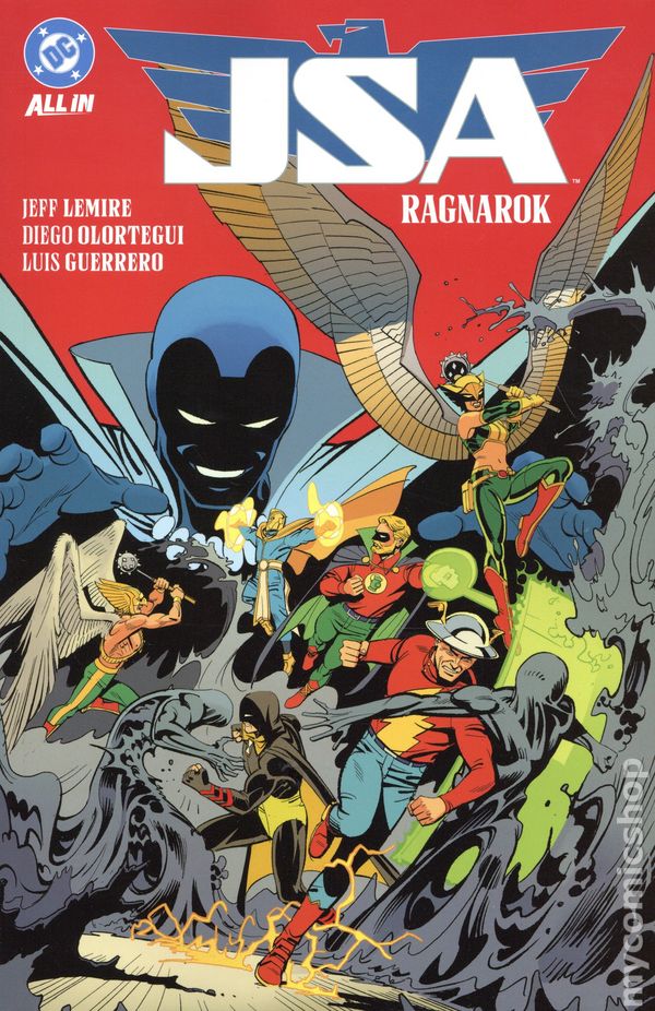 Volume 2 - 1st printing. "Ragnarok!" Collects JSA (2024 DC) #7-12. Written by Jeff Lemire. Art by Diego Olortegui, Rafael De Latorre, and Gavin Guidry. Cover by Leonardo Romero. Back Cover by Michael Cho. THE JSA IN MOURNING! The Justice Society mourns the loss of one of its own--but theres no time to rest. As the dust settles, some of their numbers are still missing, and the Injustice Society is on the verge of fulfilling a plan 80 years in the making. If the JSA doesnt discover the impostor hiding among them and find a way to stop their enemies, the world is doomed! Collects JSA #7-12 by writer Jeff Lemire (Sweet Tooth, Absolute Flash) and artist Diego Olortegui (Jay Garrick: The Flash). Hardcover, 144 pages, full color. Teen Cover price $24.99.