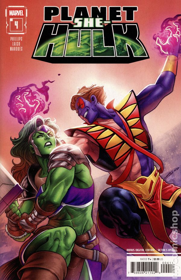 (W) Stephanie Phillips (A) Aaron Kuder, Emilio Laiso (CA) Emilio Laiso YOU DON'T KNOW JACK! How can this be?!? When last we saw Jack of Hearts, he and She-Hulk were lovers! Why, now, do we find them on a distant planet locked in battle to the death?!? The planet Sakaar really can change a person… Join She-Hulk as she tries to beat back her own past to keep the present of the planet safe! 32 pages, full color, rated T+ Cover price $3.99.