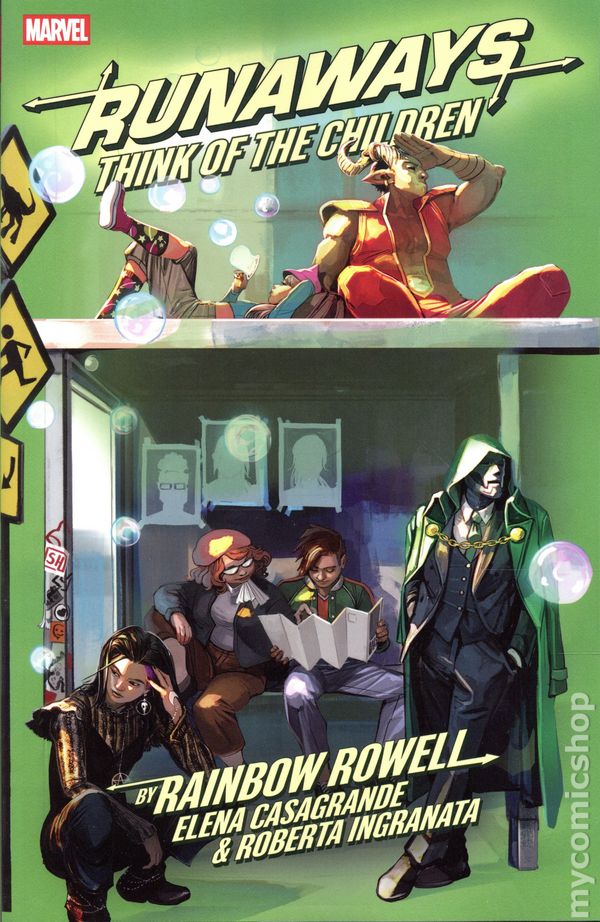 1st printing. Collects Runaways (2025 Marvel) #1-5. Written by Rainbow Rowell. Art by Elena Casagrande, Roberta Ingranata, and Lee Ferguson. Cover by Stephanie Hans. Acclaimed writer Rainbow Rowell returns to the Runaways in a world under Doom! Marvels best and scrappiest found family has seen better days! Nico Minoru has lost her girlfriend, her best friend and her magic. With Karolina, Chase and Alex all out of the picture, Gerts doing her best to shake the remaining Runaways out of running on autopilot. But when Earths new emperor, Doctor Doom, tries to reclaim one of their own, its time to start running again. With perfect timing, Chase returns from the future — looking more dangerous and broodier than ever! But what happened there thats got him so suspicious of Gert? And how long can even the Runaways evade the will of Doom? Softcover, 120 pages, full color. Rated T+ Cover price $17.99.