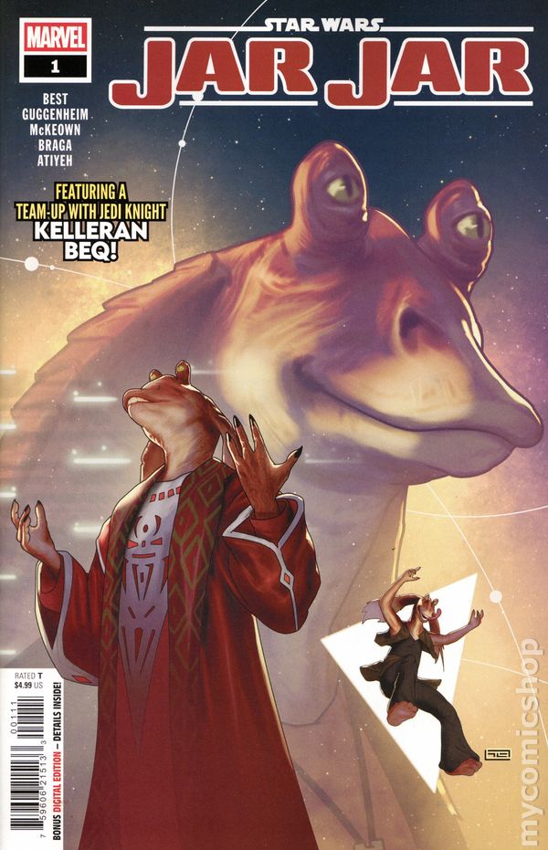 (W) Ahmed Best; Marc Guggenheim (A) Kieran McKeown; Laura Braga (CA) Dave Wachter JAR JAR RETURNS - CO-WRITTEN BY JAR JAR HIMSELF, AHMED BEST! JAR JAR faces the consequences of giving emergency powers to CHANCELLOR PALPATINE. What pivotal role does Jar Jar play in the formation of the REBEL ALLIANCE? Guest-starring fan-favorite JEDI KNIGHT KELLERAN BEQ! 32 pages, full color, rated T. Cover price $4.99.