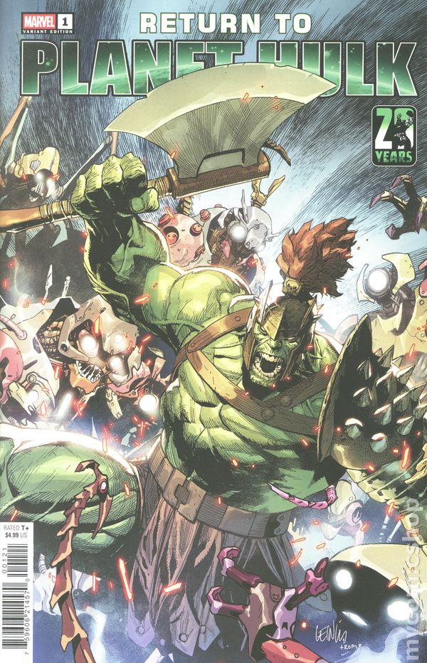 (W) Greg Pak (A) Carlo Pagulayan (CA) Leinil Yu GAMMA-IRRADATED GLADITORIAL ACTION ON PLANET HULK! ALL-NEW STORY! Green blood will flow and sparks will fly! After escaping the RED KING'S deadly arena, HULK faces ferocious monsters and smashes his way through malicious machines and wild robotic terrors in one of his most important battles of survival on the war-torn planet of SAKAAR! Two possible destinies are at stake! The SAKAARSON, savior of the planet, or the WORLDBREAKER, the legendary destroyer! Will his rage only fuel the chaos of this alien world? Trust us, you're not going to want to miss out as superstar writer Greg Pak returns to his seminal run in this epic, gripping tale! 28 pages, full color, rated T+. Cover price $4.99.