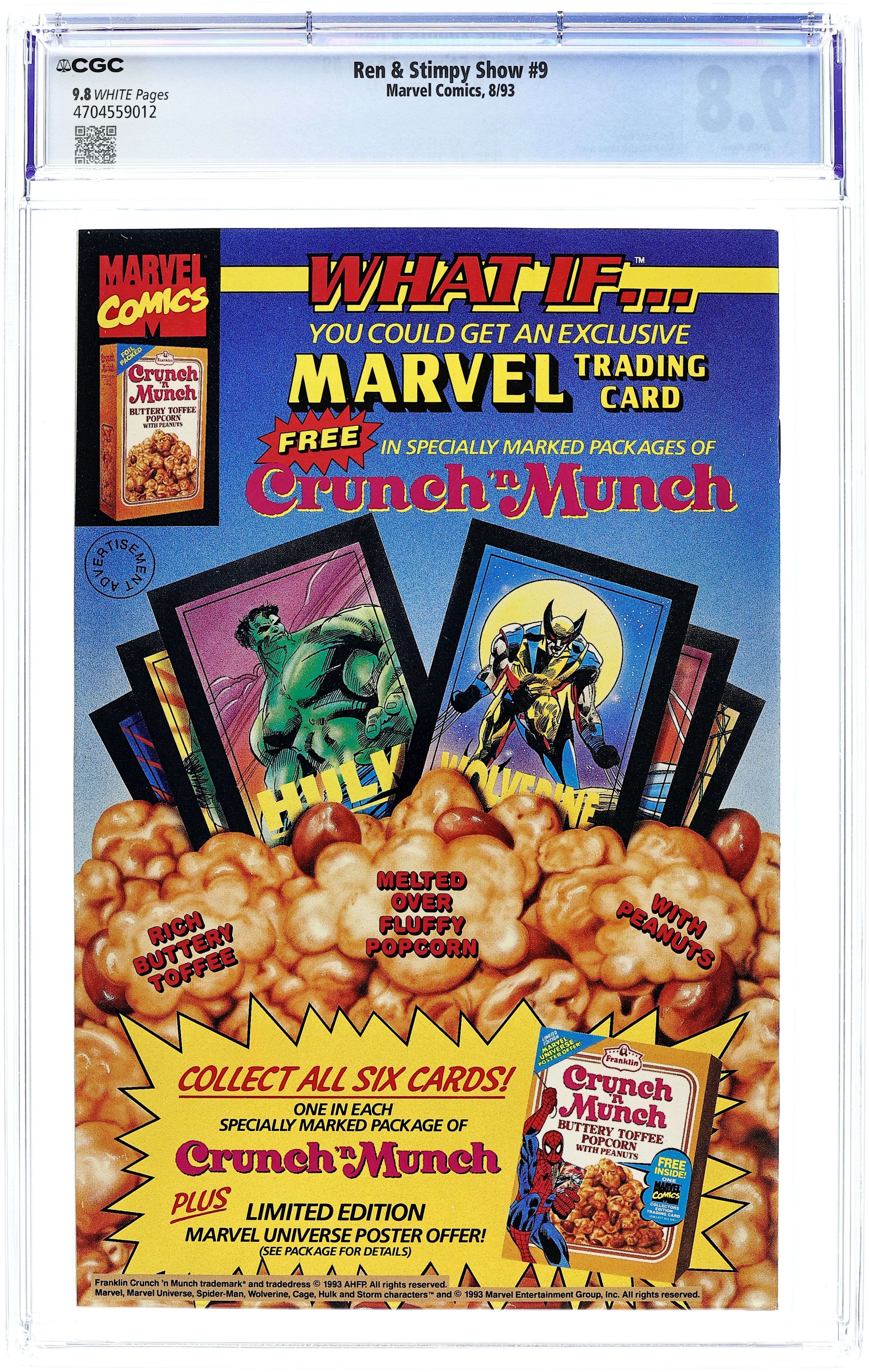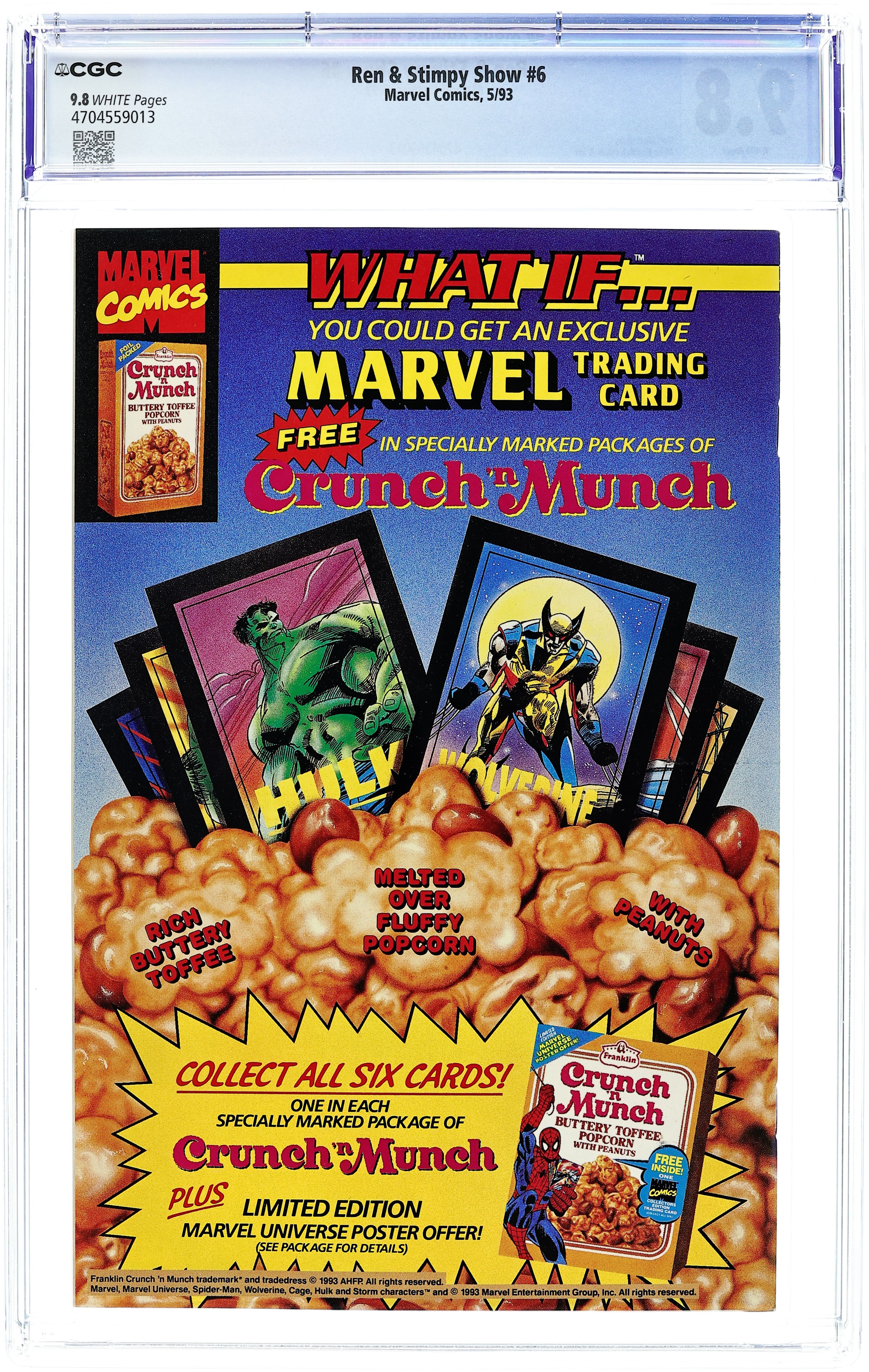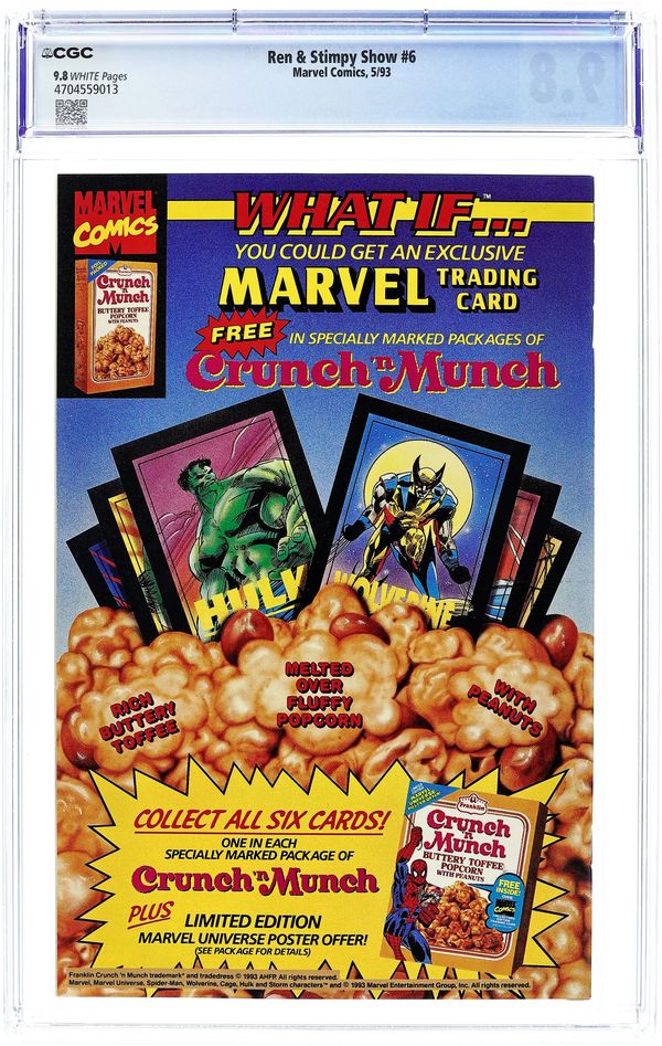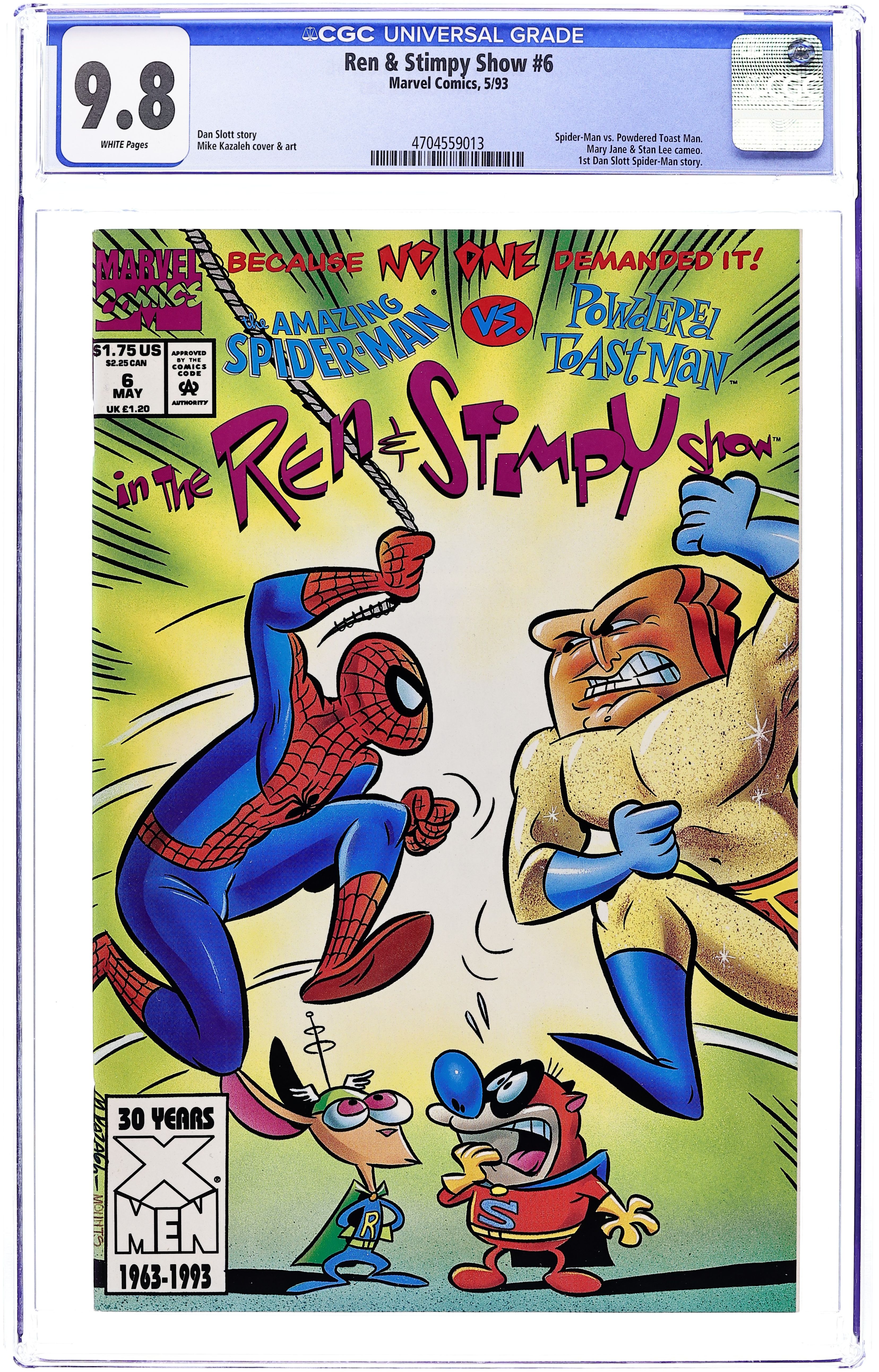 Newsstand Edition. Cover art by Mike Kazaleh. Clash of Titans Break-Fest of Chumpions starring Ren, Stimpy, Spider-Man, and Powdered Toast Man, script by Dan Slott, art by Mike Kazaleh. Untitled Ren and Stimpy story starring Spider-Man, art by Ken Mitchroney. Cover price $1.75.