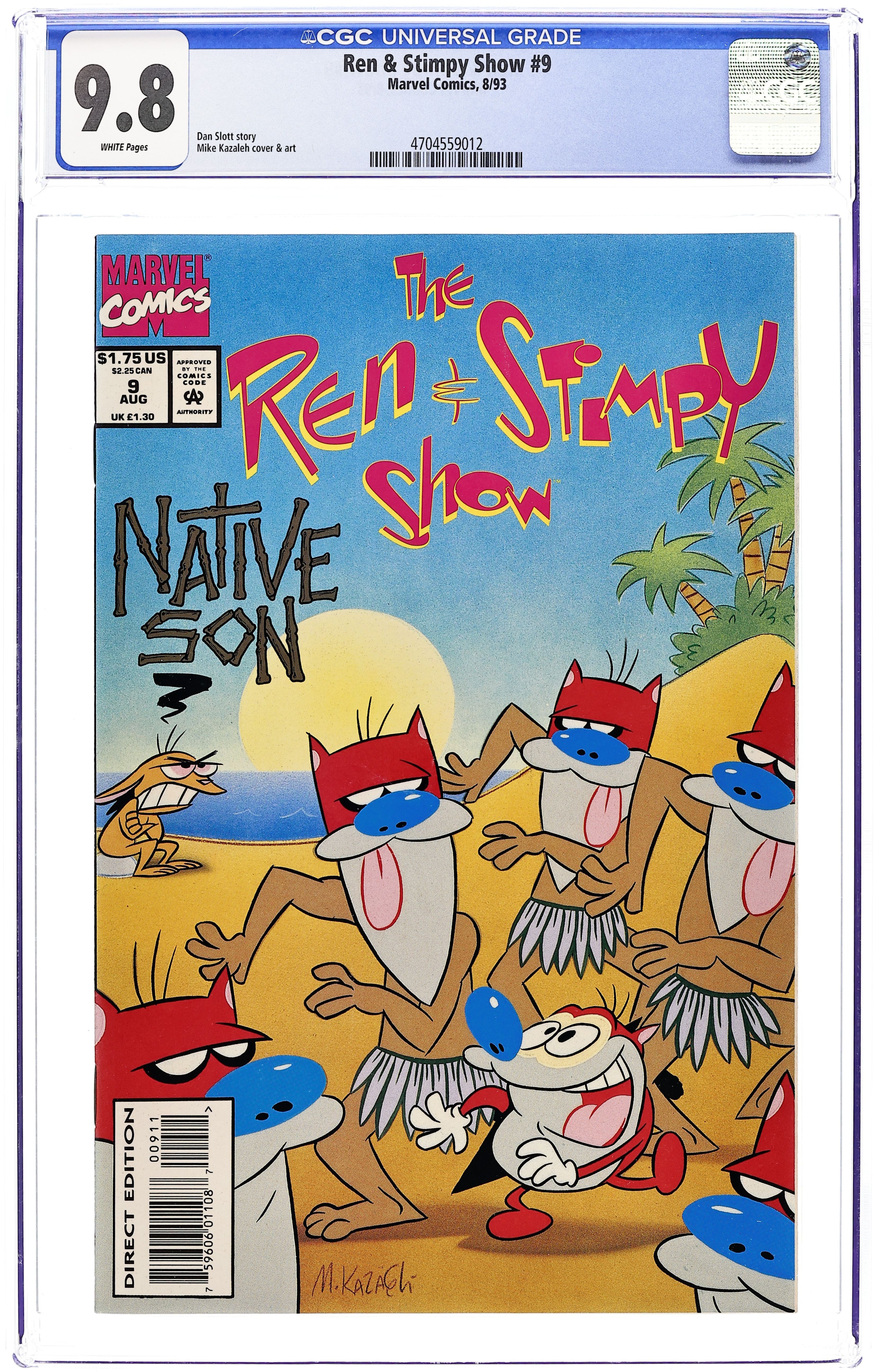 Direct Edition. Minimalist Issue starring Ren, Stimpy, and Sven. Lump's Activity Page: Origami Rock. Lump's Activity Page: Origami Roadkill. Stimpy Sing-A-Long. Scripts by Dan Slott, art by Mike Kazaleh. 32 pgs. $1.95. Cover price $1.95.