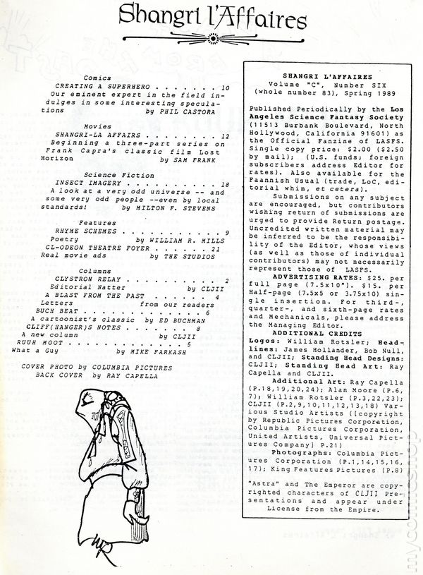 Clubzine for the Los Angeles Science Fantasy Society - LASFS. This iteration is Series 3, commonly called "Volume C". Whole number 83. 8.5" x 11", 24 pages, B&W.