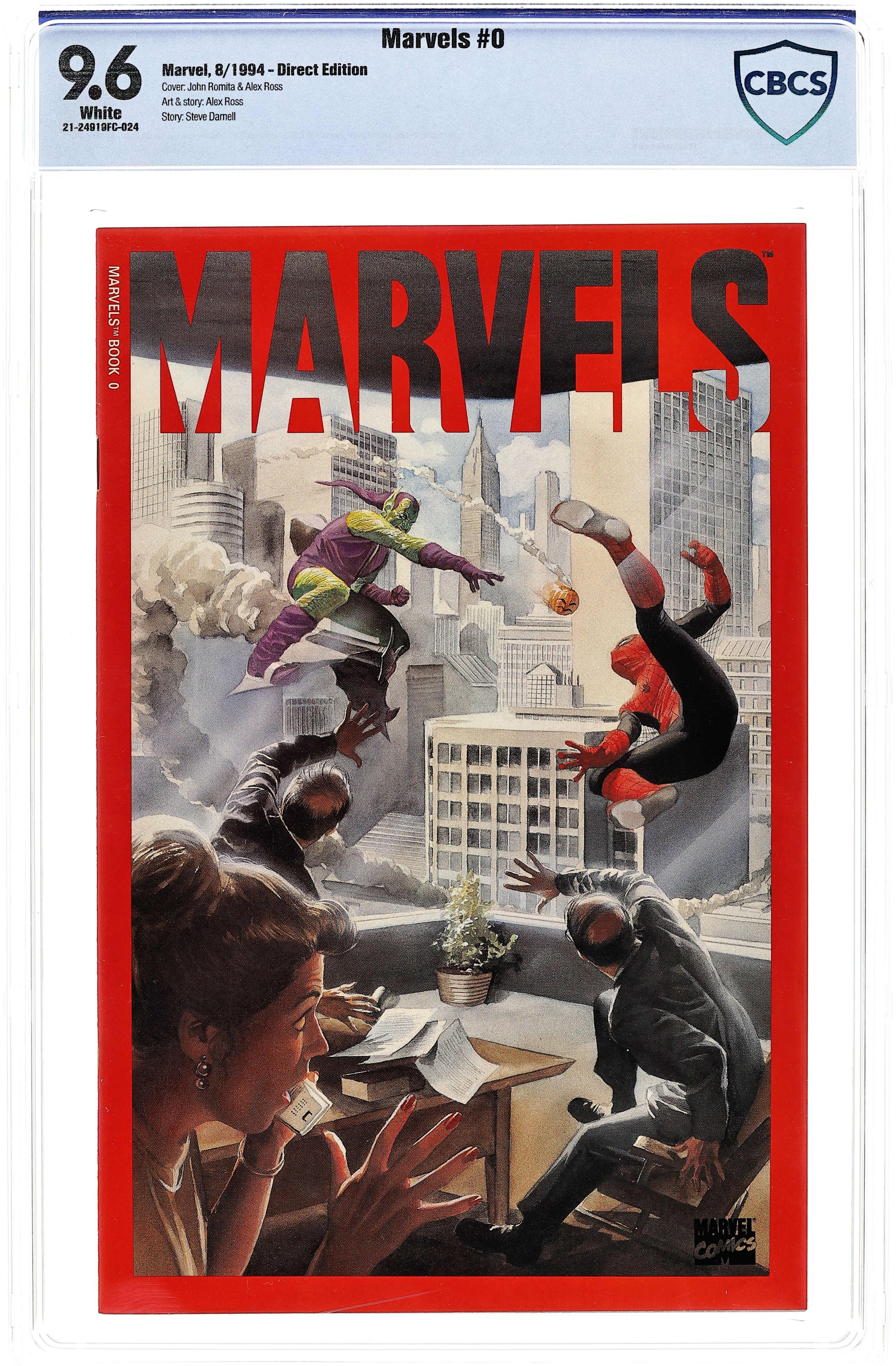Published four months after the conclusion of the landmark four-issue series, Marvels #0 includes pin-ups and character sketches by Ross, text pieces on the making of the series, and a 12-page prologue with a more detailed origin of the Golden Age Human Torch. Written by Kurt Busiek, with painted art by Alex Ross. Cover price $2.95.
