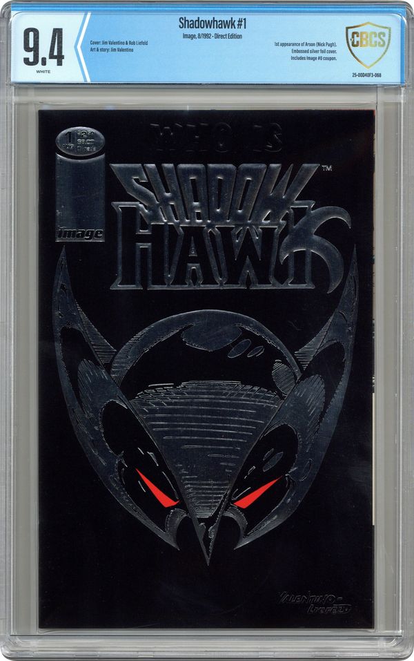 This cover variant is NOT silver embossed - Cover pencils by Jim Valentino, inks by Rob Liefeld. A Nightmare Walking, script and art by Jim Valentino; A deadly new hero prowls the night, breaking the backs of street criminals to teach them a lesson; The police try to capture him but can't even get close enough to get a good look at him; Who is Shadowhawk? Jim's First Drawing of Shadowhawk illustration. Cover price $1.95.