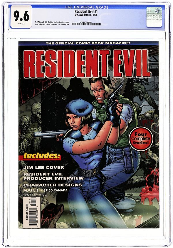 Jim Lee cover. Four stories: "S.T.A.R.S. Files" (script by Ted Adams, pencils by Ryan Odagawa, inks by Mark Irwin), "Who Are Those Guys?" (script by Adams, pencils by Carlos D'Anda, inks by Irwin), "Dangerous Secrets" (script by Kris Oprisko, plot by Adams, pencils by D'Anda, inks by Irwin), and "Raccoon City--R.I.P." (script by Adams/Oprisko, pencils by Lee Bermejo, inks by John Tighe). Interview with Resident Evil producer Shinji Mikami. Cover price $4.95.