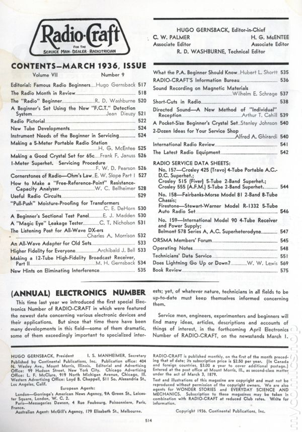 Radio News (1919-1948 Gernsback Publishing) Vol. 17 #9Published Mar 1936 by Gernsback Publishing.