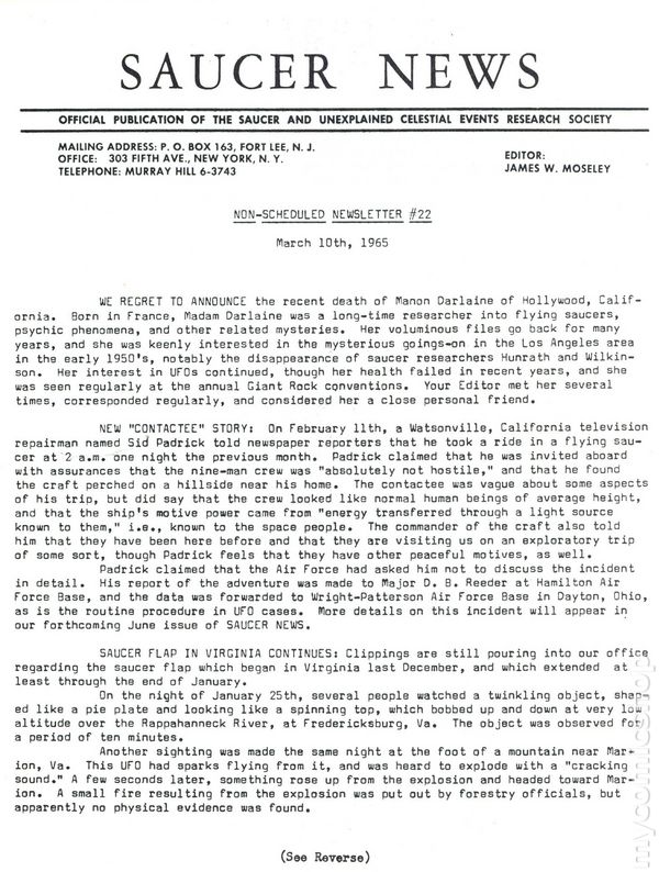 No. 22 - March 10, 1965. 8.5" x 11", 2 pages, B&W.