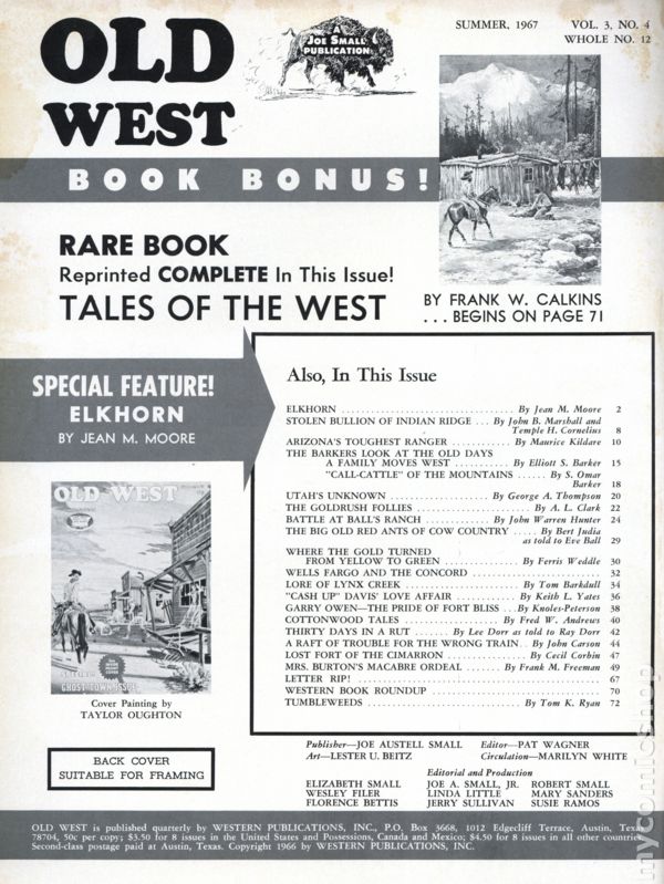 A Link to Our Pioneer Heritage; "A magazine devoted to the treasurers, artifacts and collectibles intimately associated with the expansion and development of the vast frontier". 32 pages, B&W. Cover price $0.35.