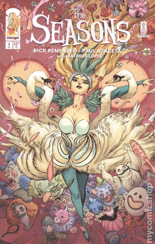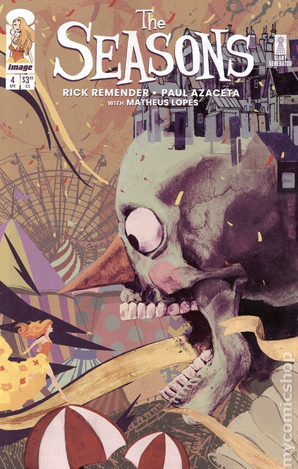 Written by Rick Remender. Art by Paul Azaceta, Matheus Lopes. Cover by Paul Azaceta. Spring uncovers clues as to the whereabouts of her sister, Autumn, and hatches a plan to find her, but she might already be too late to help sister Summer who has been invited to take center stage inside the carnival bigtop to receive a special gift from the Ringleader. 28 pages, full color. Rated T+ Cover price $3.99.