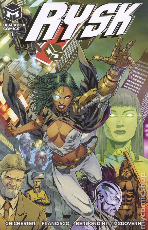 Written by D.G. Chichester. Art by Mannix Francisco. Cover by Igor Vitorino. When mankind is rocked by a flesh-ravaging virus, people rebuilt themselves with scavenged tech. Bookie and hustler Ruby Chance got more than expected: her fix unlocked a radical A.I. that calls itself RYSK, amping Ruby's senses and skills - an edge she'll need to survive against road-raging assassins. 20 pages, full color. Rated T+. Cover price $5.99.