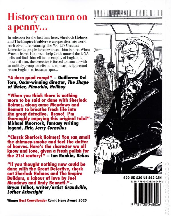 Volume 1 - 1st printing. Written by Joel Meadows. Art by Andy Bennett. Pin-Up Art by Frazer Irving, Barry Kitson, Liam Sharp, Bill Sienkiewicz, Shawn Martinbrough, David Hitchcock, and Andy Bennett. Cover by Walt Simonson. Back Cover by Andy Bennett. Find out how the story started with this debut in paperback with an exclusive cover from Mark Chiarello (Batman: The Last Halloween). When Watson leaves Holmes to help Francis Crick unravel the DNA helix and finds himself in the employ of England's most evil man, Holmes is forced to team up with an unlikely group to defeat this monstrous figure and return England to its status quo. With pin-ups from Liam Sharp, Bill Sienkiewicz, Shawn Martinbrough, and Barry Kitson. Perfect for fans of Michael Moorcock and Bryan Talbot. Softcover, 96 pages, B&W. Teen Cover price $35.00.