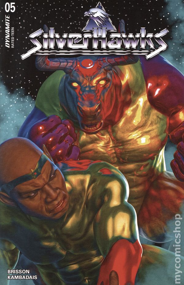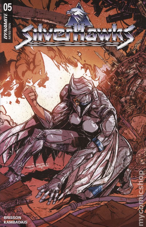 Written by Ed Brisson. Art by George Kambadais. Cover by Mark Spears. A BAPTISM OF FIRE! The first arc of the SilverHawks' all-new adventures closes out with a special flashback tale of the elite law enforcers' earliest days. Nearly 100 years ago, Mon*Star and his gangster crew held Bedlama in an iron grip of terror - until Commander Stargazer and his untested team went head-to-head to take them down. When the dust cleared, Stargazer had his man - but the price of victory was higher than he ever imagined! Future historians ED BRISSON and GEORGE KAMBADAIS bring readers back to where it all began in SilverHawks #5 - supported by documentary evidence from MARK SPEARS, JAE LEE & JUNE CHUNG, JAMES STOKOE, GERALDO BORGES, DREW MOSS, LESLEY 'LEIRIX' LI, MANIX, and DAVID COUSENS! 32 pages, full color. Rated T Cover price $4.99.