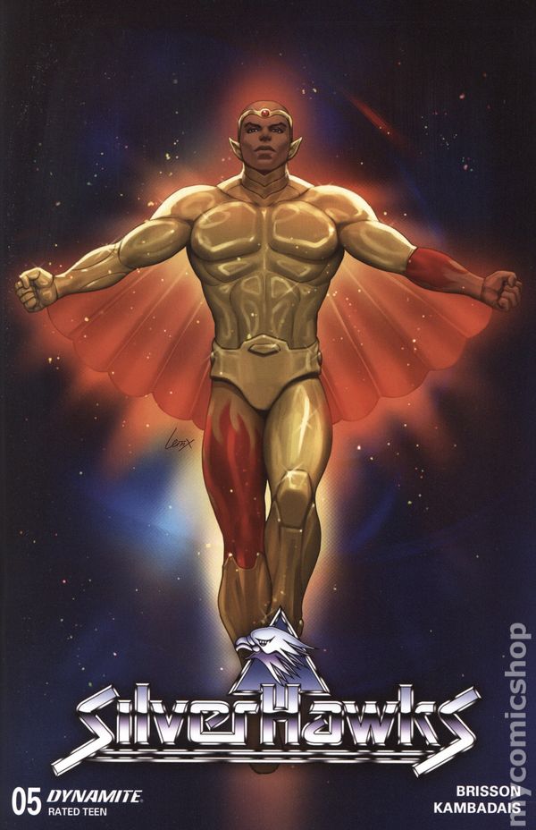Limited 1 for 10 Retailer Incentive Variant Cover. Written by Ed Brisson. Art by George Kambadais. Cover by David Cousens. A BAPTISM OF FIRE! The first arc of the SilverHawks' all-new adventures closes out with a special flashback tale of the elite law enforcers' earliest days. Nearly 100 years ago, Mon*Star and his gangster crew held Bedlama in an iron grip of terror - until Commander Stargazer and his untested team went head-to-head to take them down. When the dust cleared, Stargazer had his man - but the price of victory was higher than he ever imagined! Future historians ED BRISSON and GEORGE KAMBADAIS bring readers back to where it all began in SilverHawks #5 - supported by documentary evidence from MARK SPEARS, JAE LEE & JUNE CHUNG, JAMES STOKOE, GERALDO BORGES, DREW MOSS, LESLEY 'LEIRIX' LI, MANIX, and DAVID COUSENS! 32 pages, full color. Rated T Cover price $4.99.